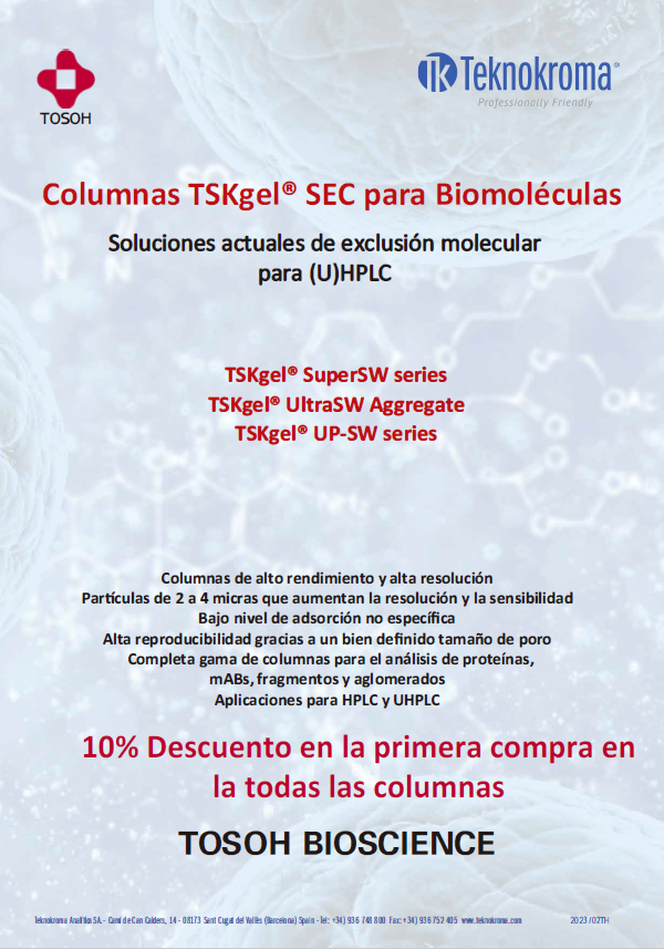 La Cromatografía de Exclusión por Tamaño (SEC) separa las moléculas según su tamaño, o más precisamente, su volumen hidrodinámico. Se basa en la discriminación de los componentes individuales de la muestra por los poros del material de empaque. Las moléculas de muestras grandes no pueden o sólo pueden penetrar parcialmente en los poros y eluir de la columna primero, mientras que las moléculas más pequeñas pueden acceder a todos o a un mayor número de poros y eluir después. La SEC es el único modo de cromatografía que no implica la interacción con una fase estacionaria por medio de la adsorción o la partición de los solutos.